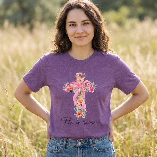 He Is Risen Floral Cross Easter Tee