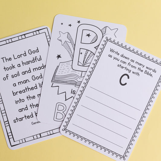 ABC Bible Fun Alphabet Coloring Cards