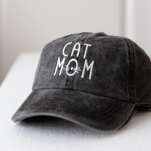 'Cat Mom' Cat Lovers, Embroidered Design, Soft Denim Cotton, Adjustable, One Size, Baseball Hat, Fashionable