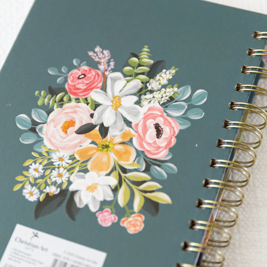 Journal Wire Bound 'Love the Lord Your God' Teal Floral Matthew 22:37