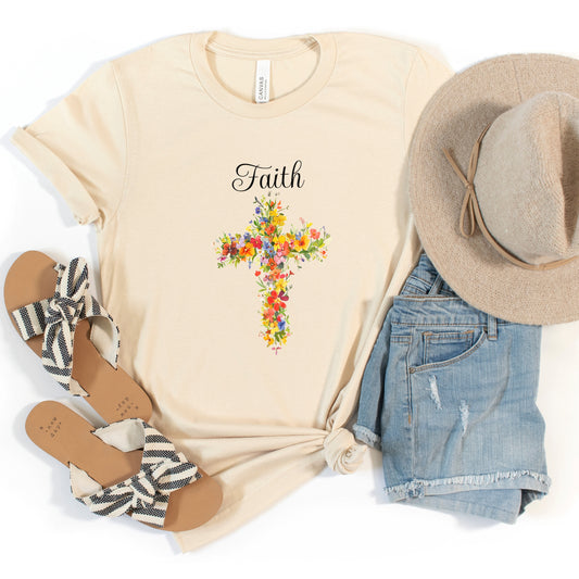 Inspirational Christian T Shirt, Floral Cross, 'Faith' Women's Tee