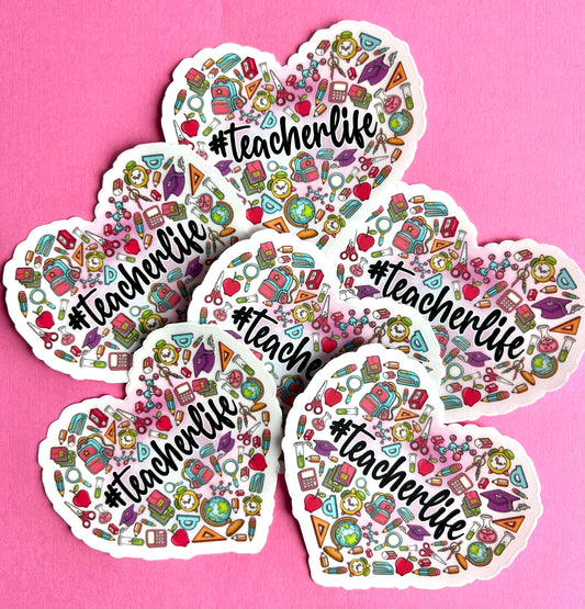 Teacher Life Heart Clear Vinyl Sticker 3"