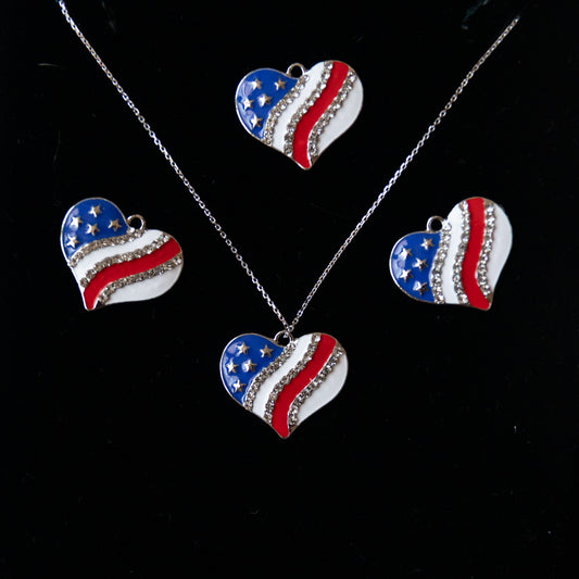 USA Flag Design Heart Shape Charm and USA Letters Shape Jewelry Charms