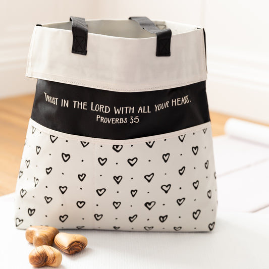 Trust in the Lord.. Cream Nylon/Canvas Tote, Durable Tote with pockets,Heart Pattern Print