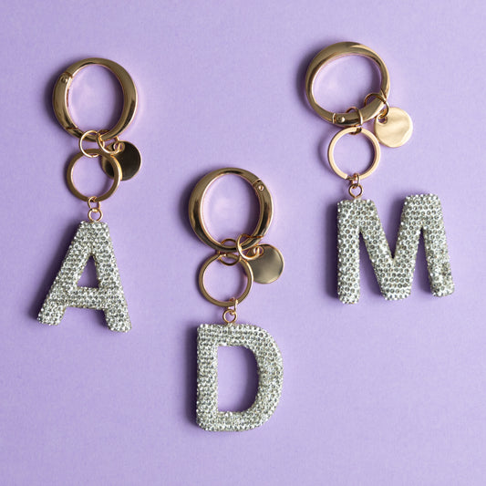 White & Black Bling Initial Key Chains