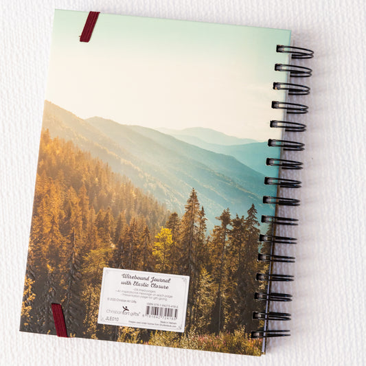 Wirebound Hardcover Journal with Elastic Closure, Be Strong and Courageous, Realistic Nature Design Cover