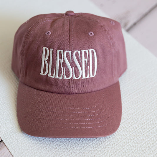 Women's Embroidered Baseball Cap, 'Blessed' Embroidered Lettering, Adjustable Size, Mauve