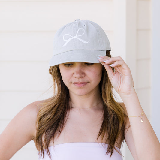 White Bow Embroidered Design Cotton Denim SoftBaseball Cap Adjustable