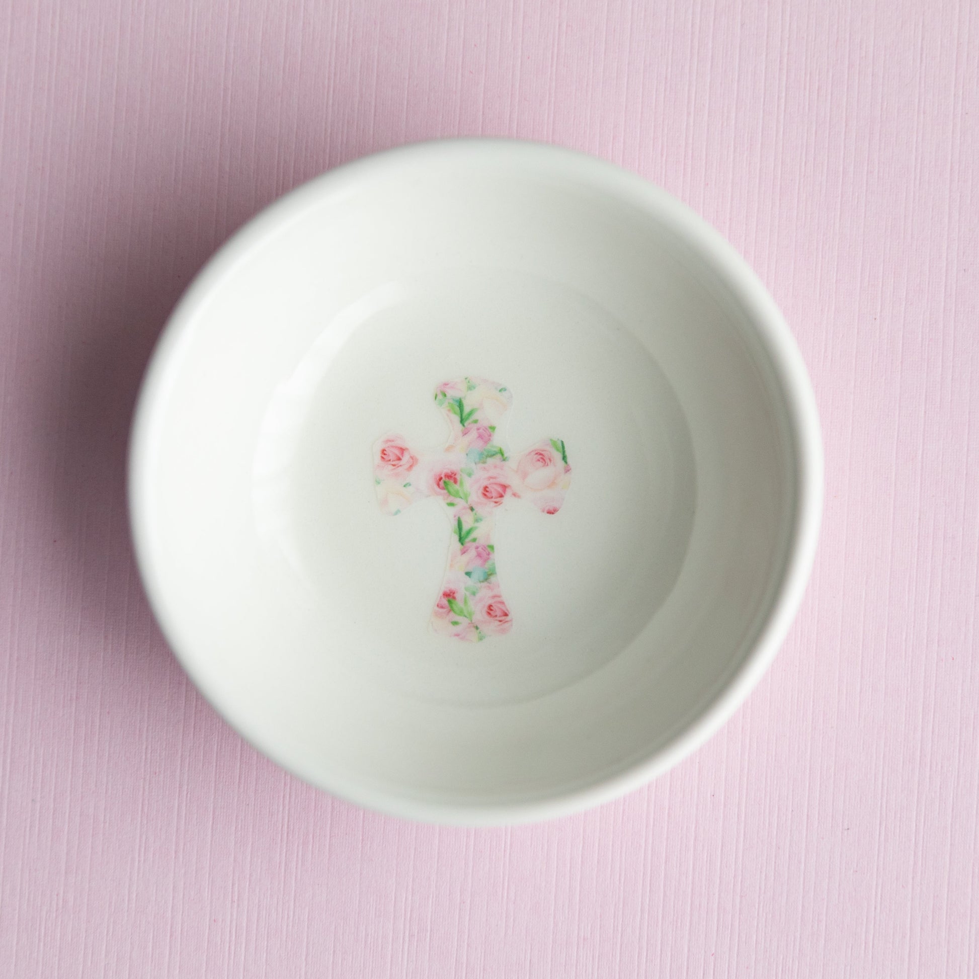 Discover the perfect gift that combines utility with artistic charm. This hand-painted ceramic trinket dish features a captivating floral cross design in rich, colorful tones set against a clean white base. At 3 inches in diameter, it's the ideal size for storing rings, earrings, and small treasures while adding a decorative touch to any room. Each piece showcases the care and attention of artisanal craftsmanship, making it a meaningful present for someone special.