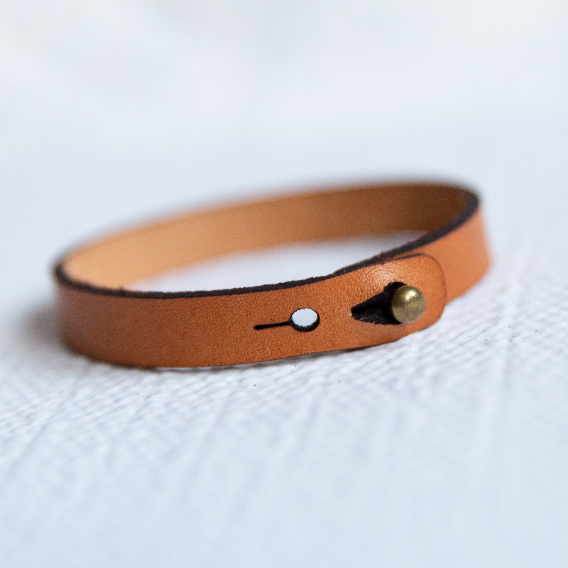 Elevate your everyday style with this skinny full grain soft leather bracelet, thoughtfully engraved with an uplifting message to inspire you. Individually cut and engraved by hand from a local leather shop. Choose your perfect fit with adjustable sizing in 7" or 7.5". Wear it solo or stack multiple bracelets for a personalized look that reflects your unique spirit.