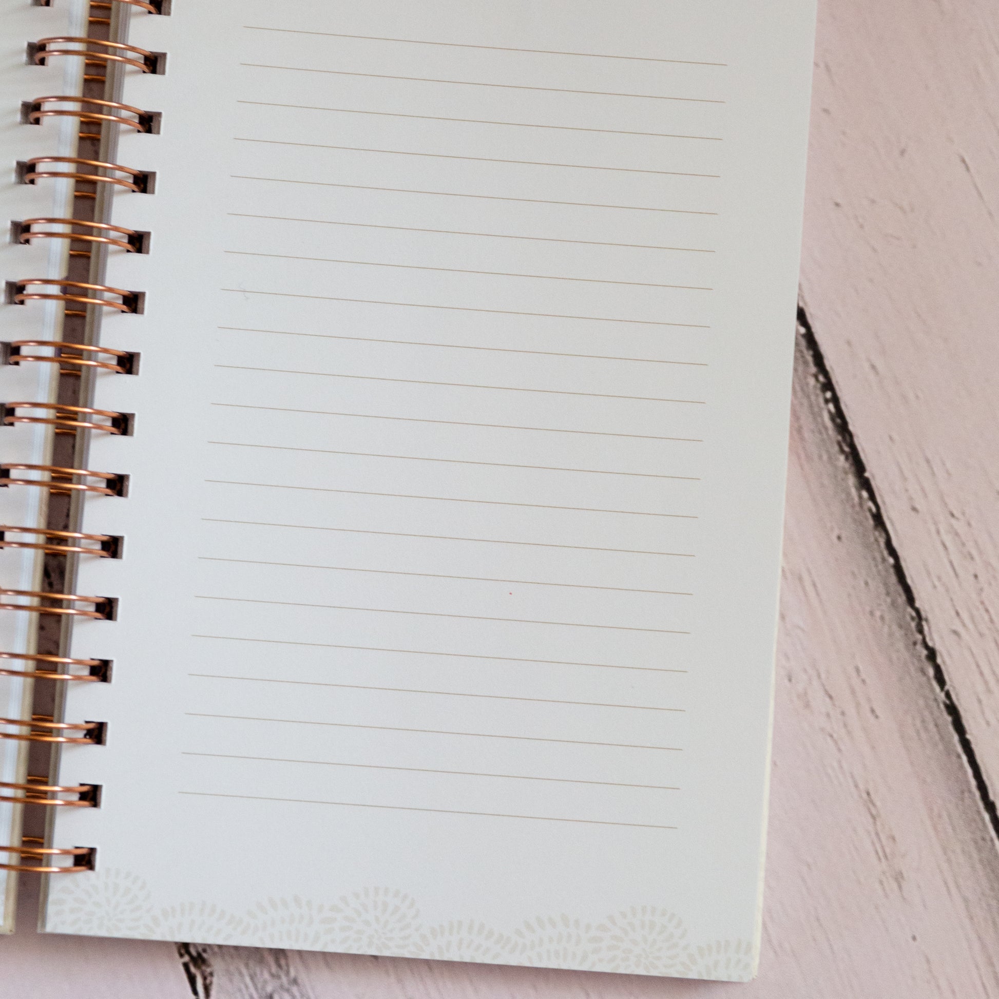 Capture your daily thoughts, prayers, and Bible study notes in this beautifully (copper colored wire) wire-bound journal. Featuring a durable hardcover with a charming floral poppy design and the inspiring phrase "Love is Patient, Love is Kind," it’s the perfect gift for anyone seeking a meaningful way to reflect and grow spiritually. Its lined pages provide ample space to organize sermon notes or heartfelt prayers, making it an essential companion on your faith journey.
